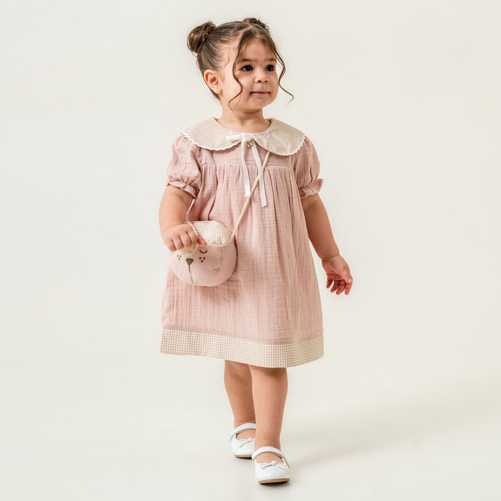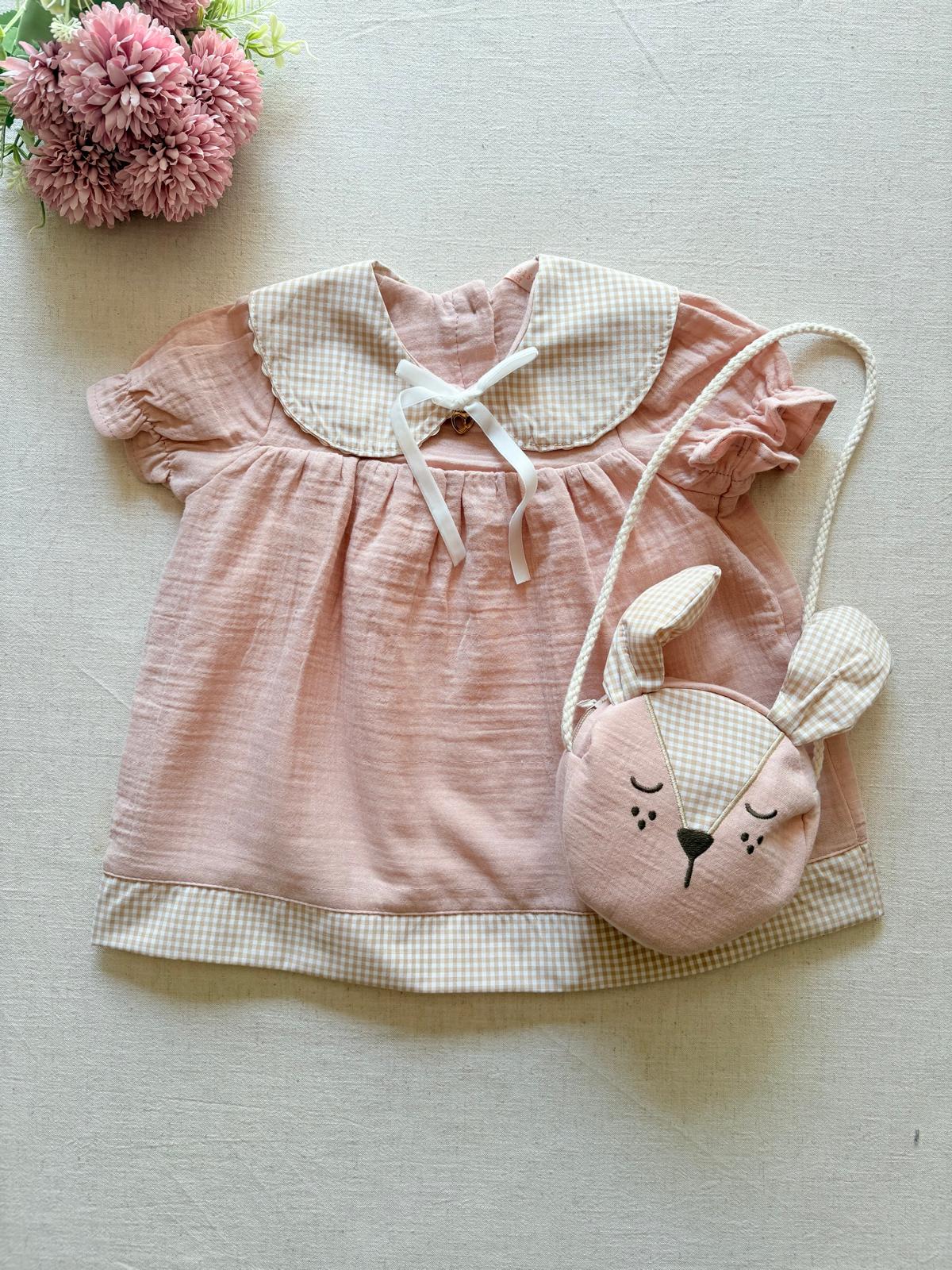 Bahar ve yaz ayları için mükemmel bir seçim olan müslin çocuk elbise, küçük prenseslerin tarzını yansıtıyor. Bu elbise, hafif müslin kumaşı sayesinde hem rahat hem de şık bir görünüm sunuyor. Elbisenin yanında gelen tavşan müslin çanta, çocuklarınızın en sevdikleri eşyalarını taşıması için harika bir aksesuardır.