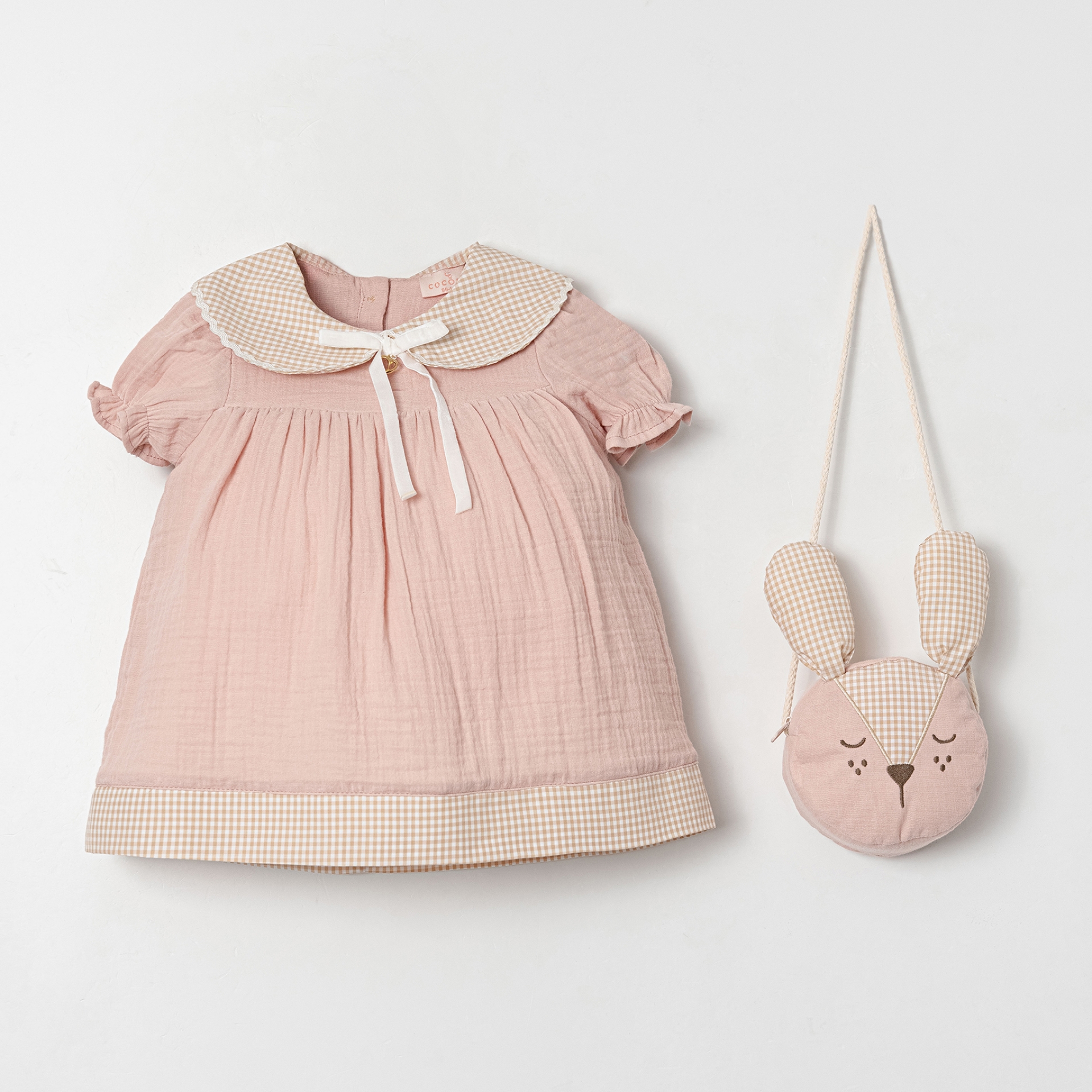 - Sevimli müslin kumaş tavşan çanta ile tamamlanmış set